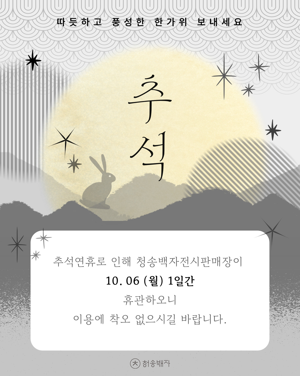 추석연휴로 인해 청송백자전시판매장이