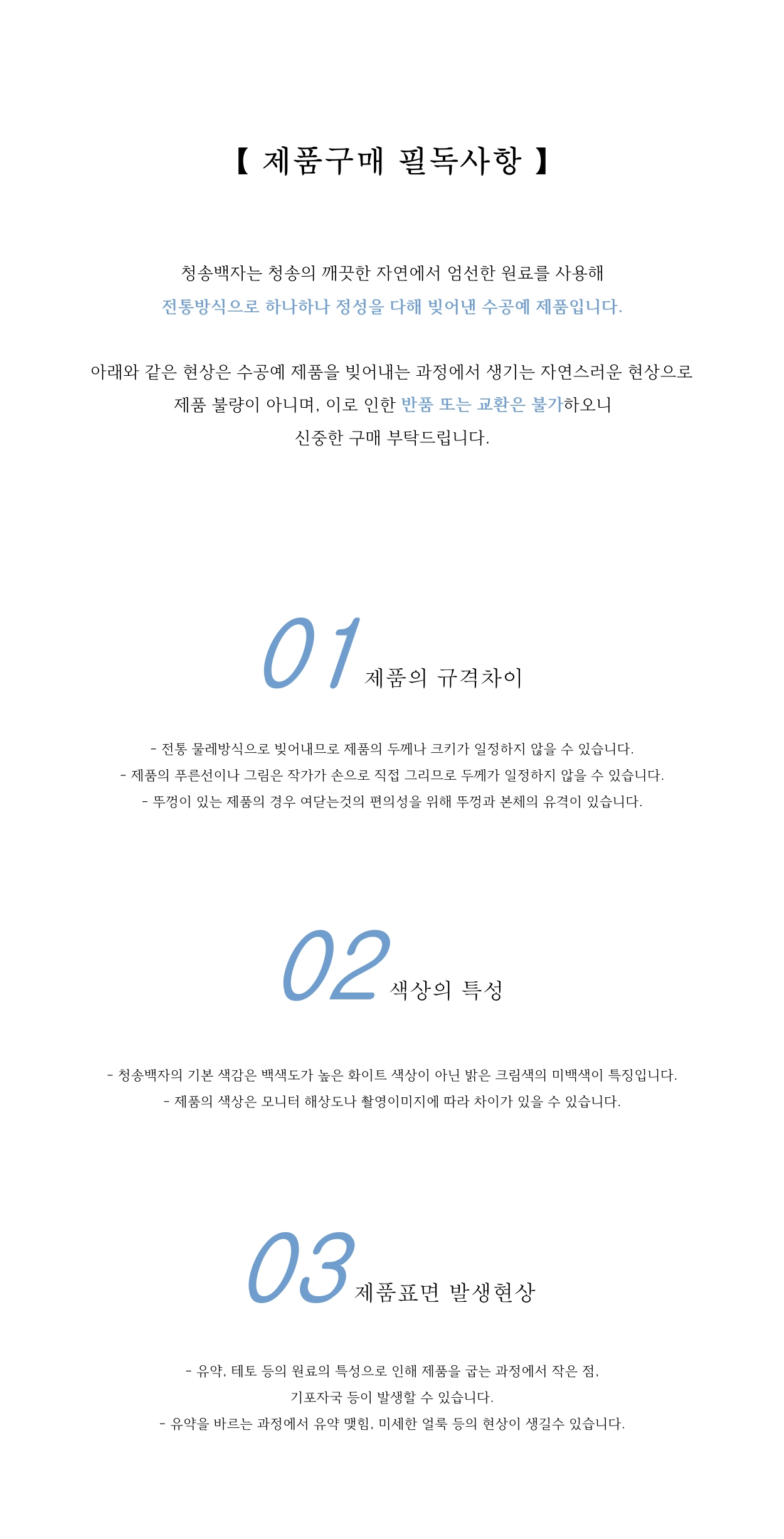 - 교환/반품 연락번호: 청송백자판매숍 054-873-7749